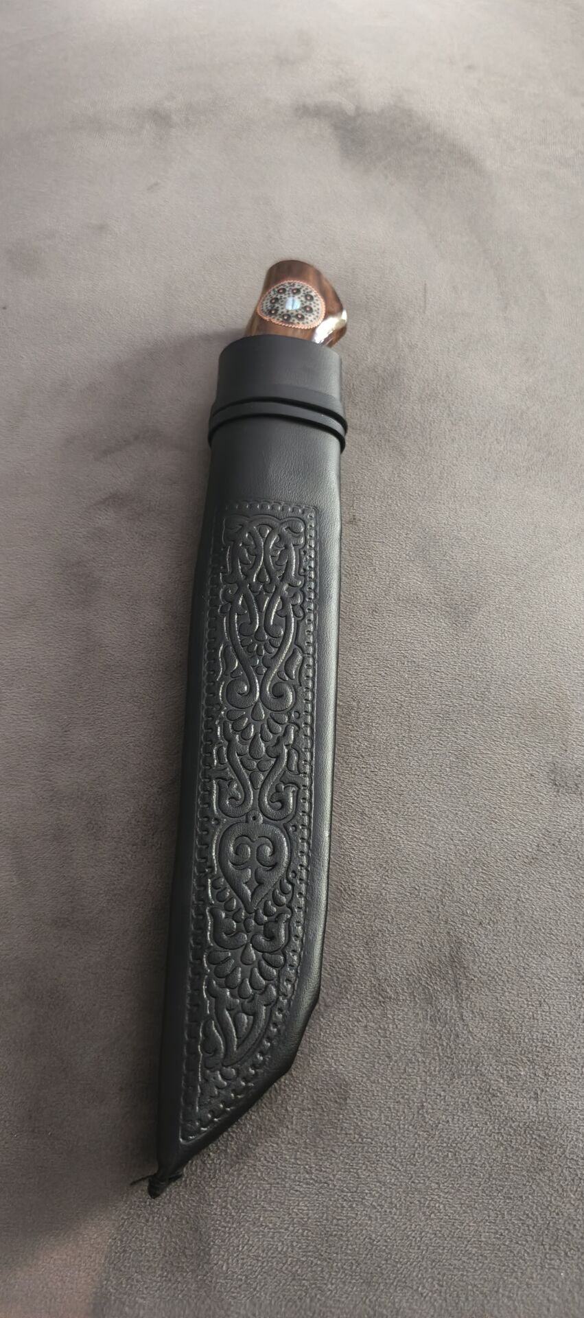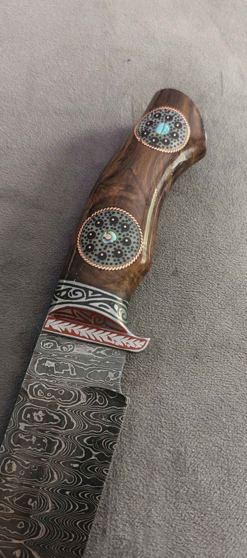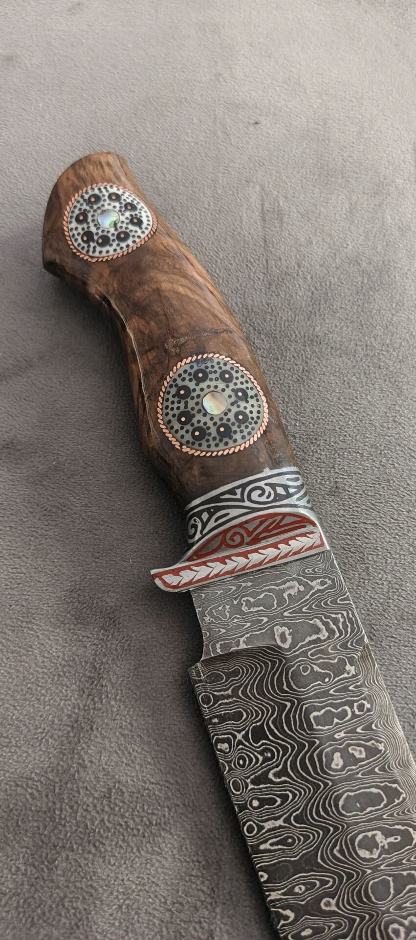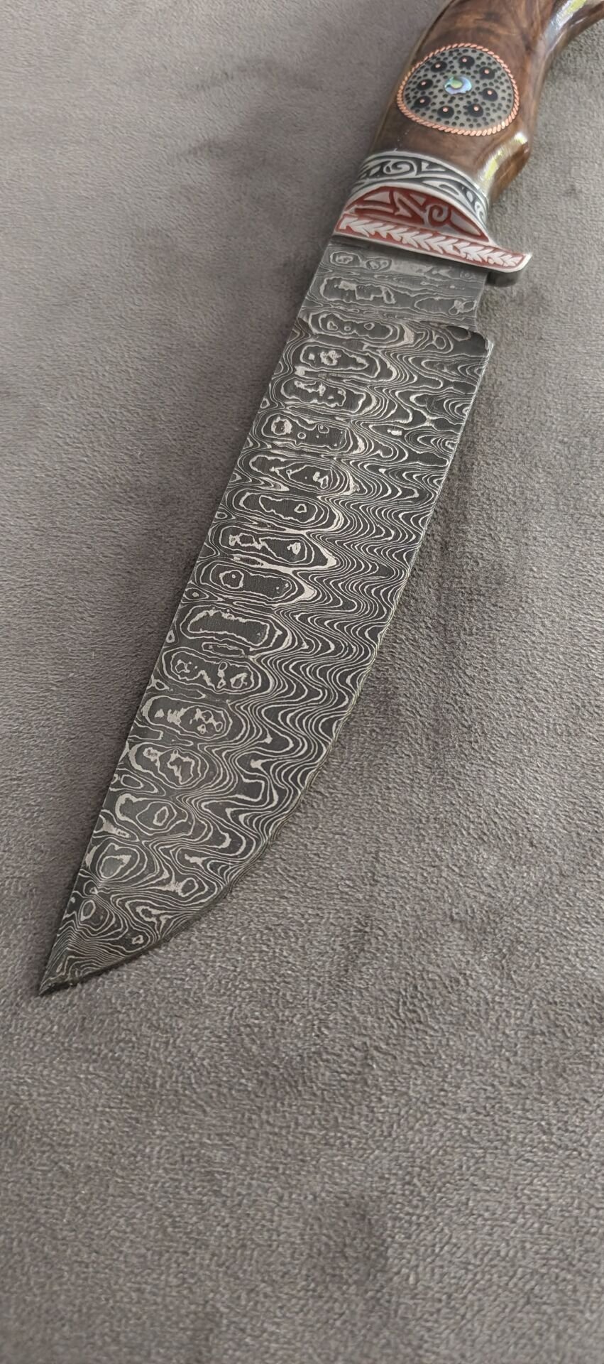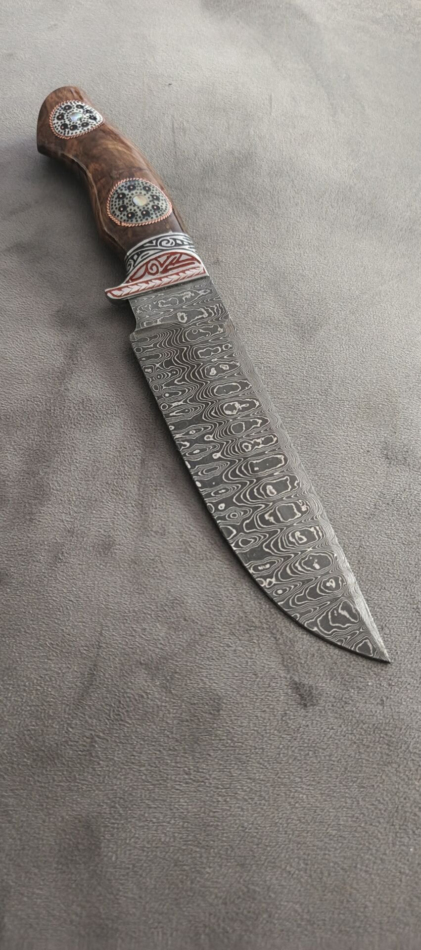 Damascus avcı özbek yapımı alüminyum işlemeli balcak reçine el işlemeli kabza güzel bir koleksiyonluk parca