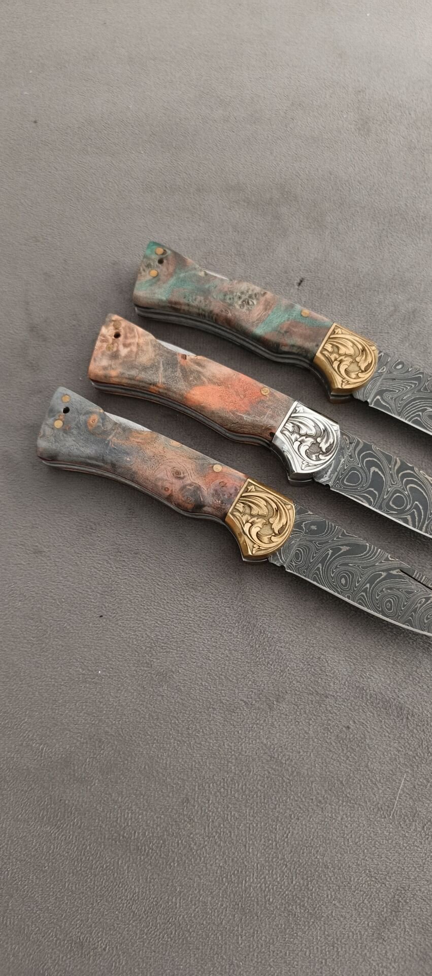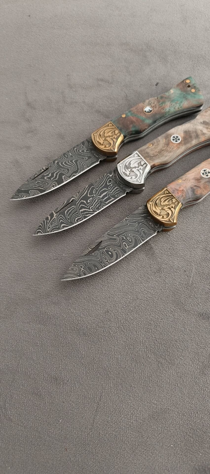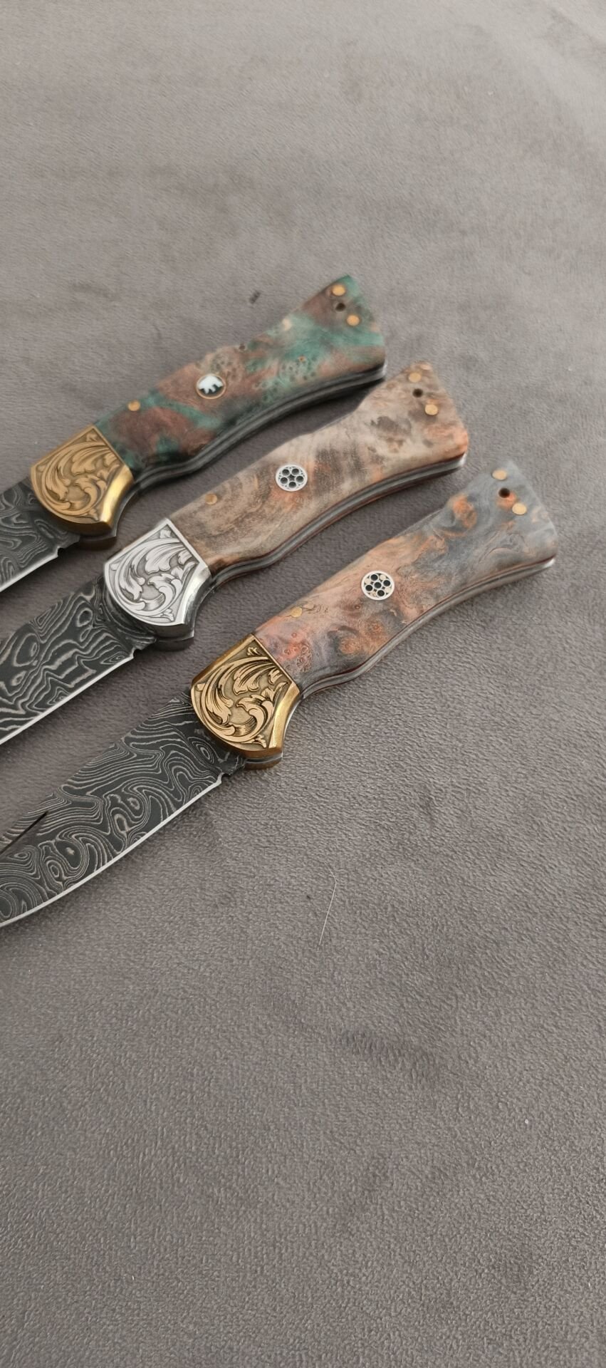 Damascus şam celiği pirinc balcak sırttan kilitli epoksi kabze mozaik pimli