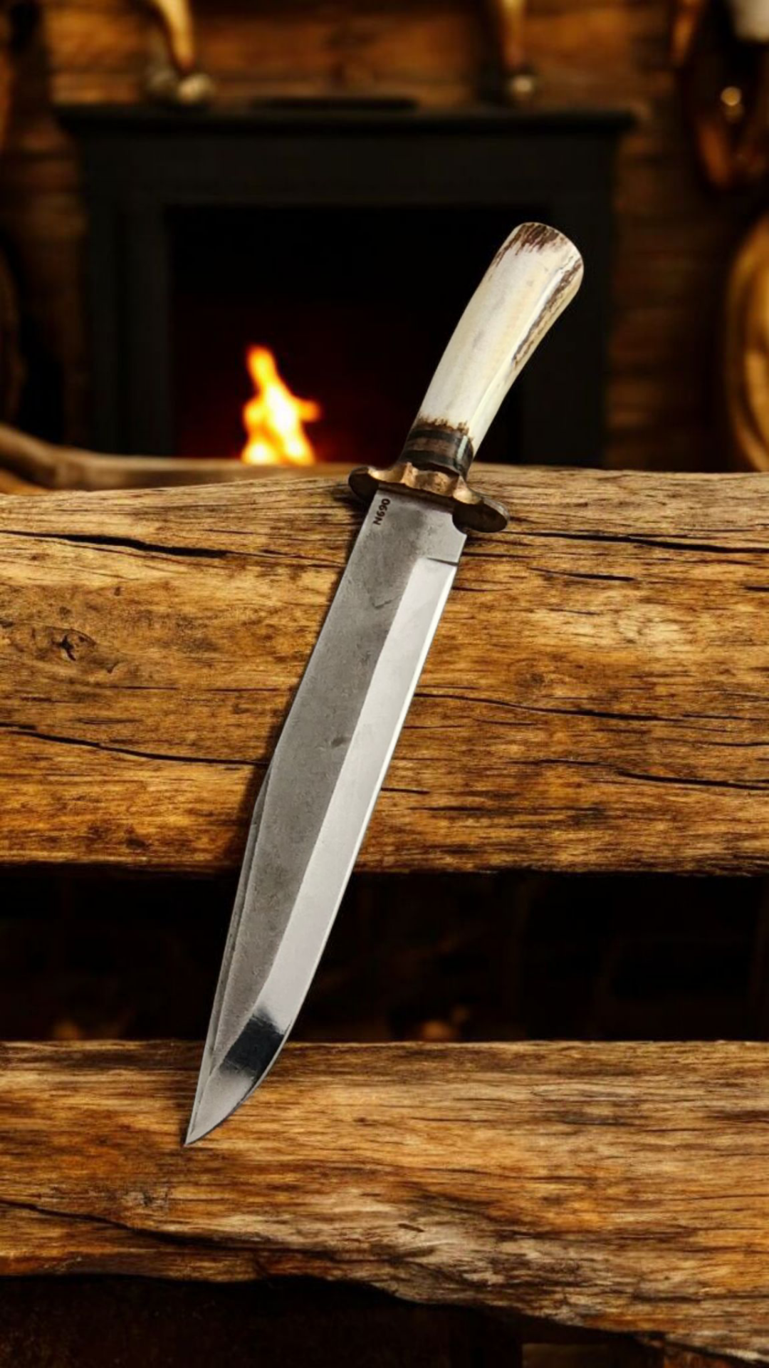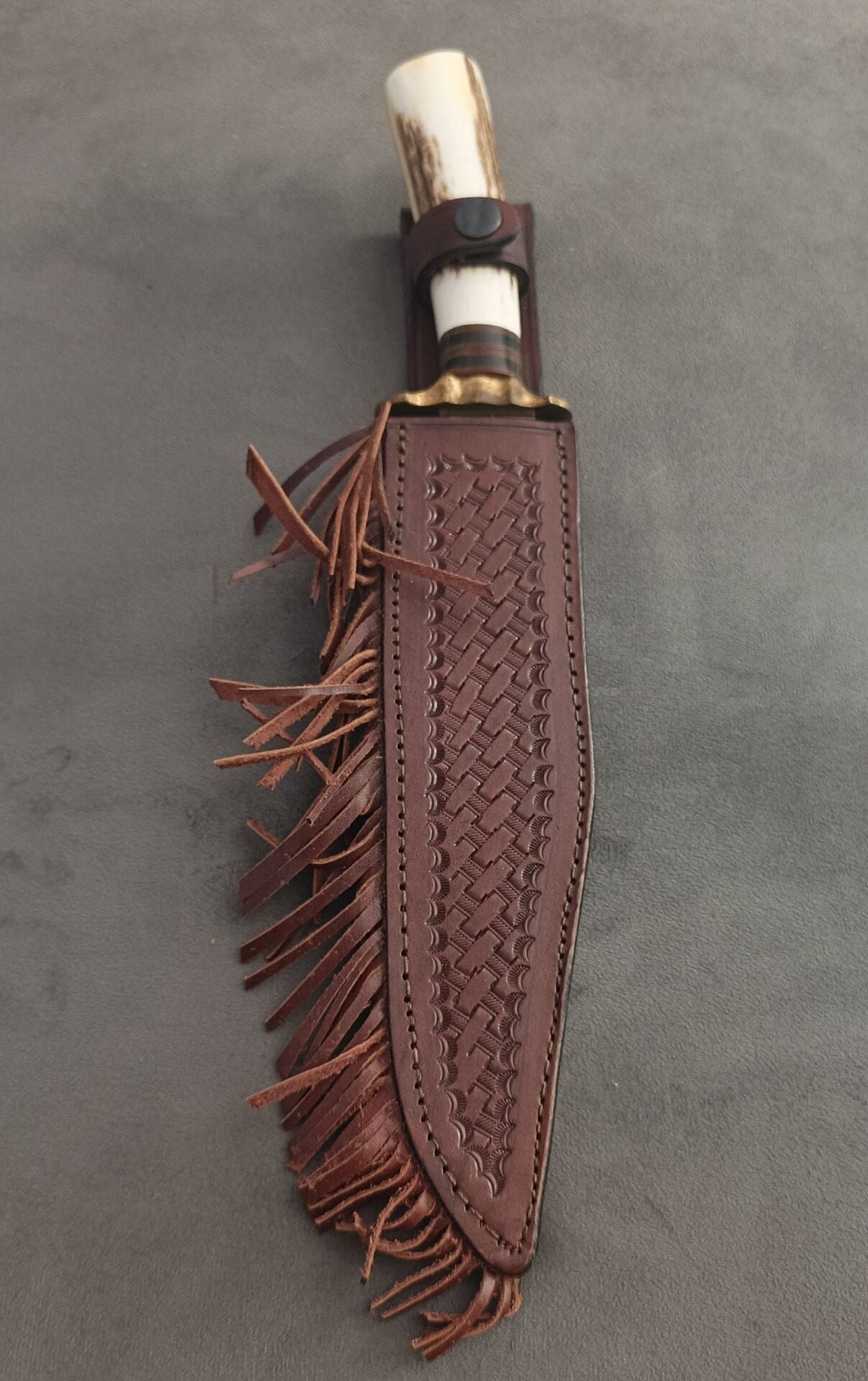 N690 avcı dev boy pirinc balcak geyik boynuz deri kılıflı