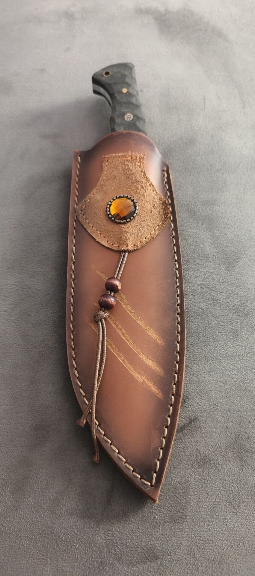 Yay celiği dövme desenli Avci ağac kabza orjinal manda deri kılıflı